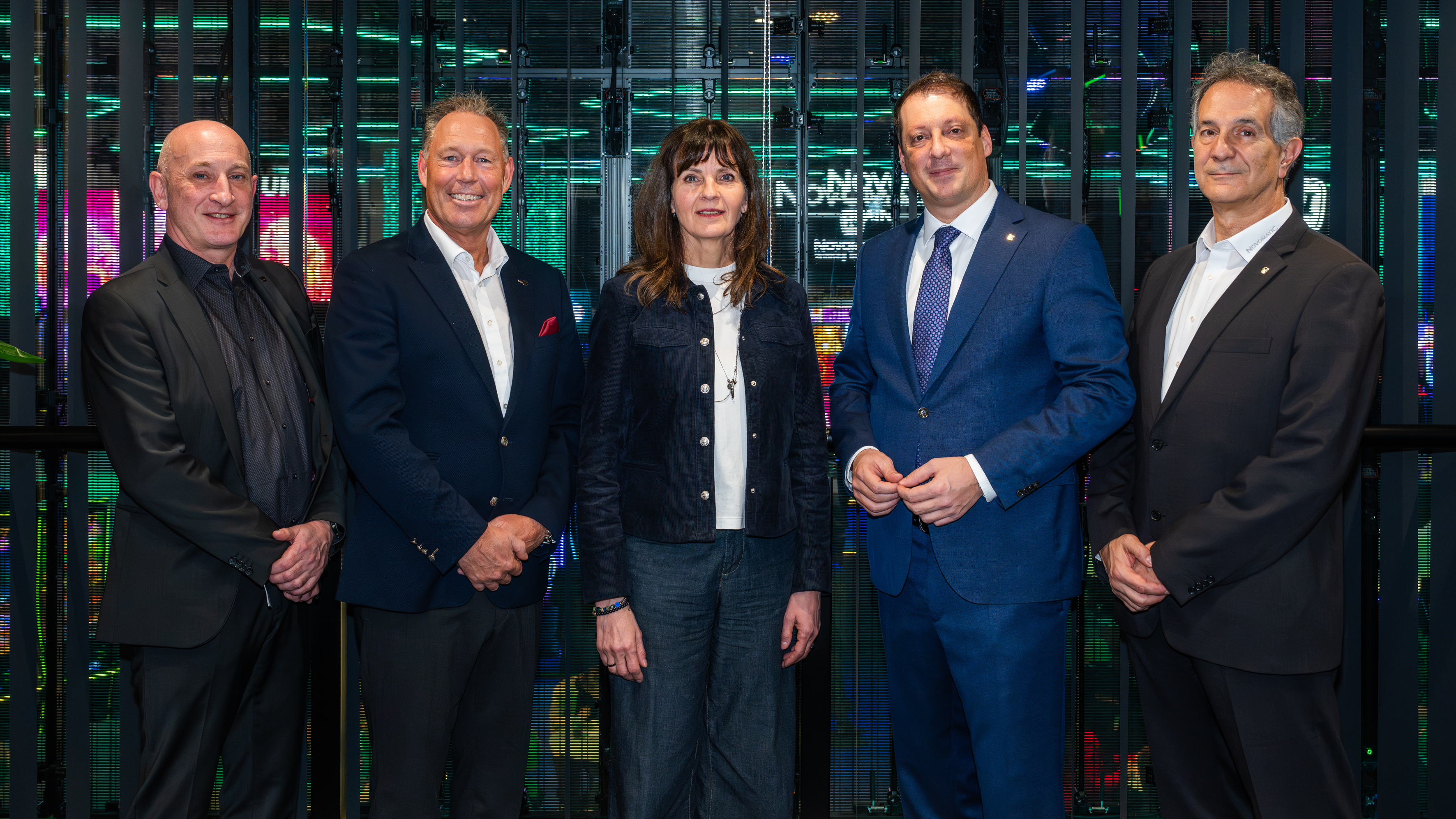 Gruppenfoto (v. l. n. r.): Jens Einhaus (Head of Sales & Product Marketing NBS), Robert van Roosendaal (Global Sales NOVOMATIC), Bryndís Hrafnkelsdóttir (CEO der UIL), Stefan Krenn (Vorstand NOVOMATIC) und George Paterakis (Project Manager NBS).